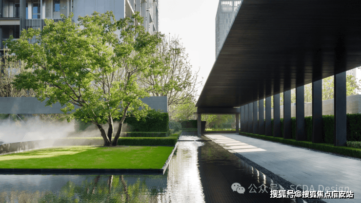 The design of public spaces is dedicated to creating a tranquil and elegant residential experience. Starting with the user's homecoming experience, a drop-off courtyard surrounded by greenery and water features serves as the forecourt to the reception lobby. Connected through a landscaped corridor to the front yard of the clubhouse and descending through steps to a sunken courtyard, this alternating open and enclosed spatial order can effectively evoke residents' emotions. With the interplay of lush greenery and water features, a rich and serene ambiance is thus created.