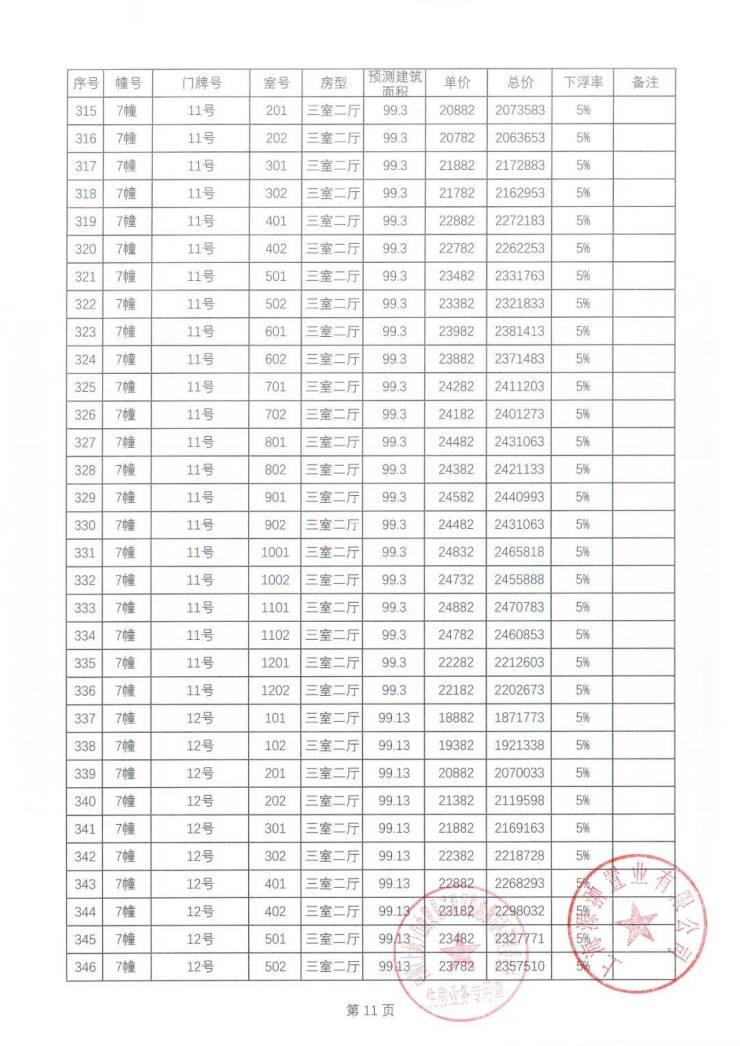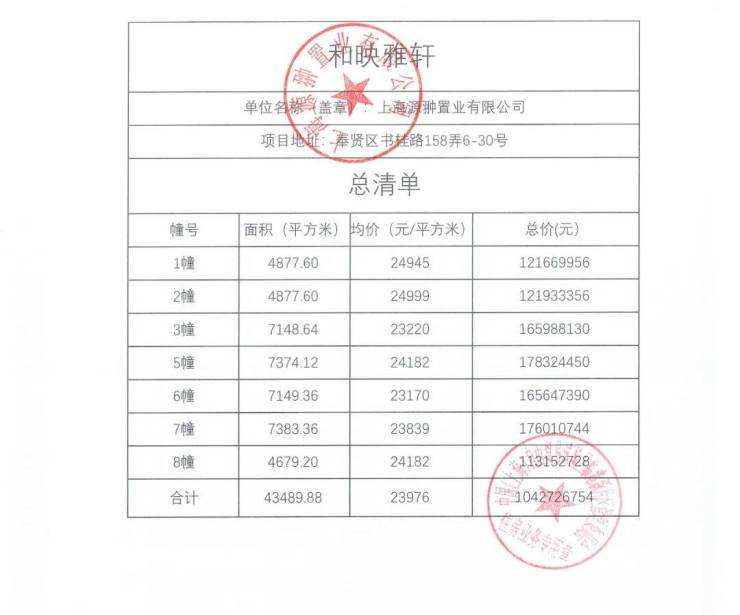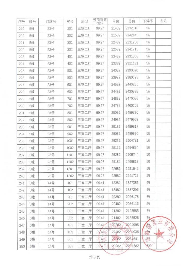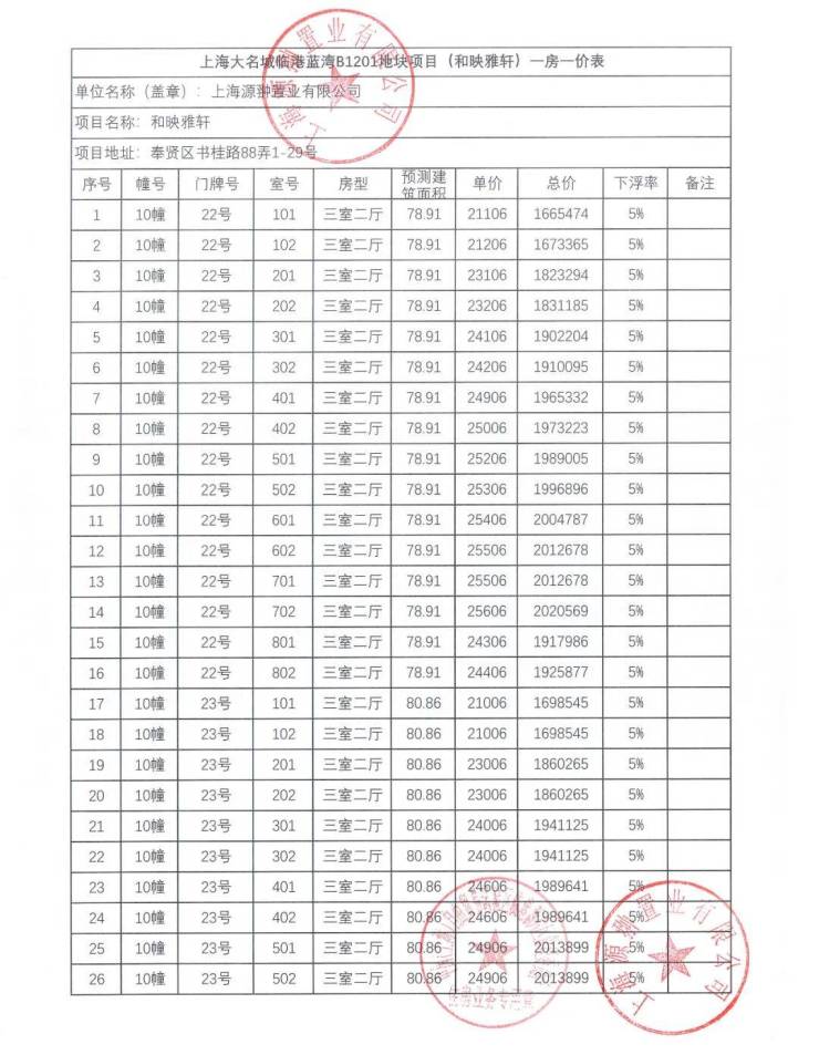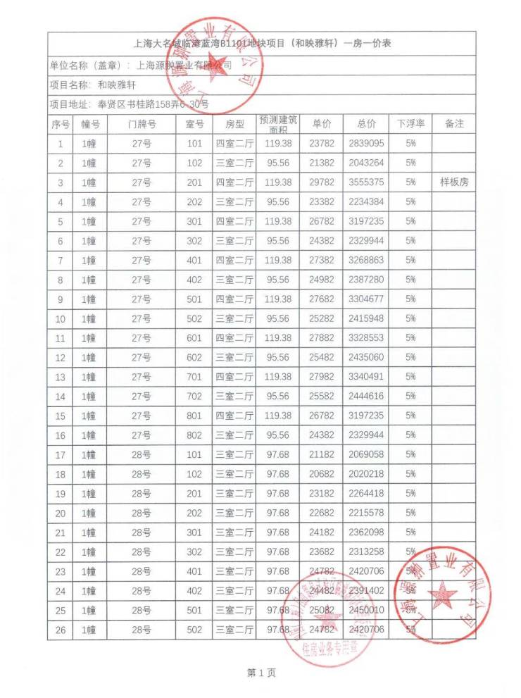 一房一价表