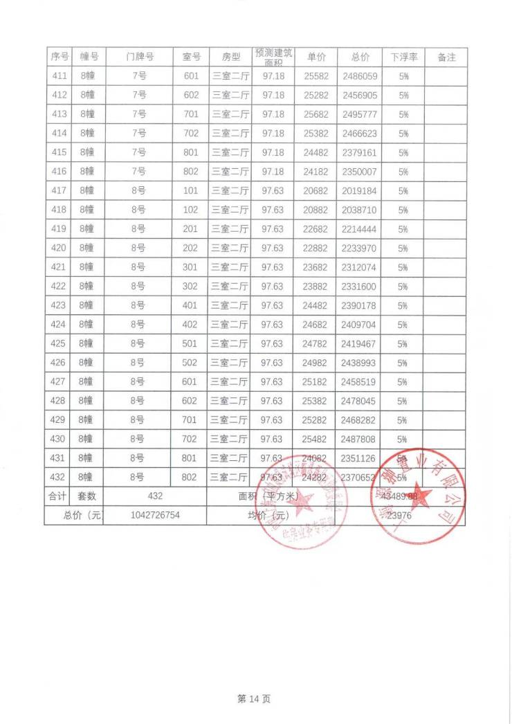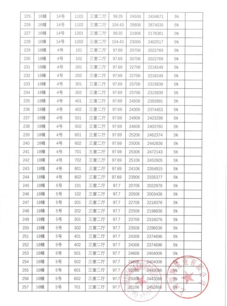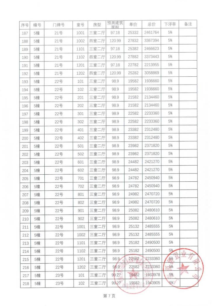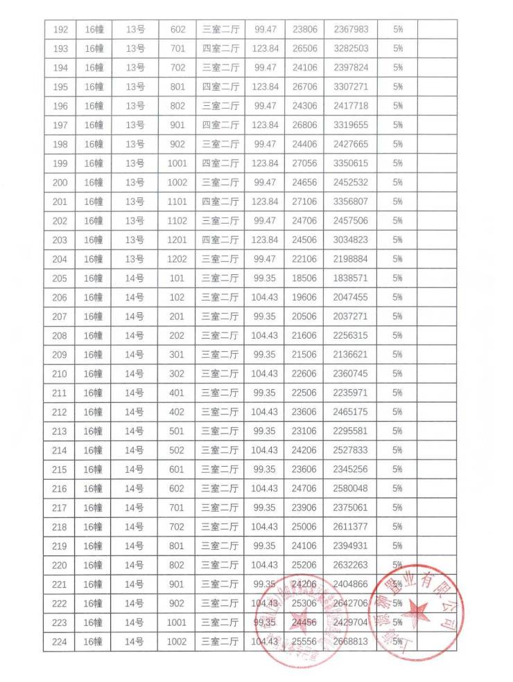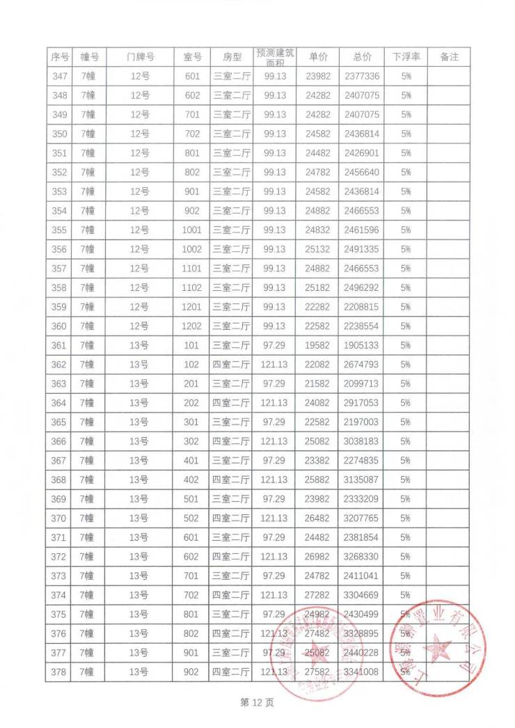 一房一价表