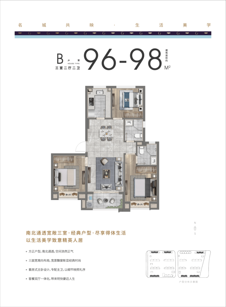 南北通透宽敞三室·经典户型·尽享得体生活