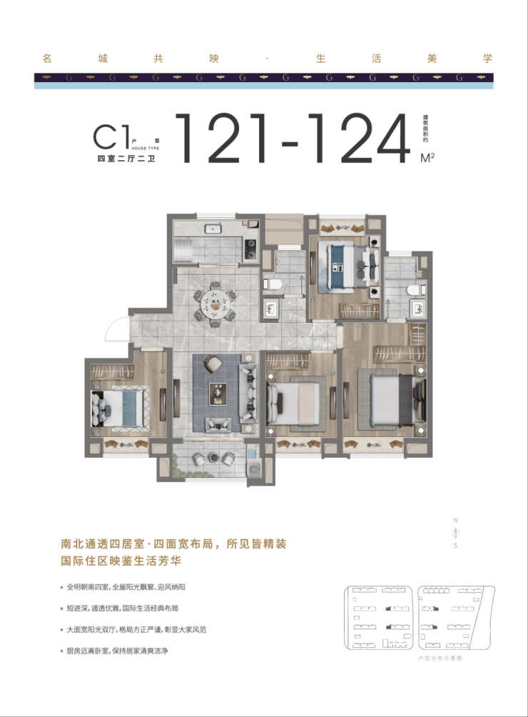 南北通透四居室·四面宽布局·所见皆精装