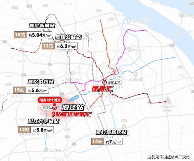 第二,从招商时代潮派出发:3站七宝、6站漕河泾、9站徐家汇,之后还有打浦桥、马当路、小南门、世纪大道、金桥等一系列大产业区和商业中心,这条轨交的能级在上海数一数二。