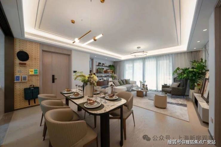 从项目南入口,穿越前厅的潺潺水景,便是与社区建筑完美融合的门厅大堂,其设计简约而不失精致,摒弃繁复细节,彰显出新海派独有的高雅格调。