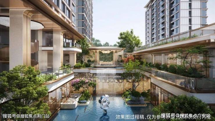 主入口是长约50米、高约10米的大气门楼,归家体验向豪宅看齐。景观则复刻西湖郭庄,亭台水榭,叠水潺潺。