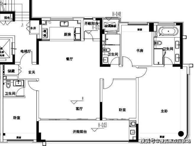 先来看4#楼,这个建面约180m²四房两厅三卫东边户大户型,就非常讲究舒适度。
