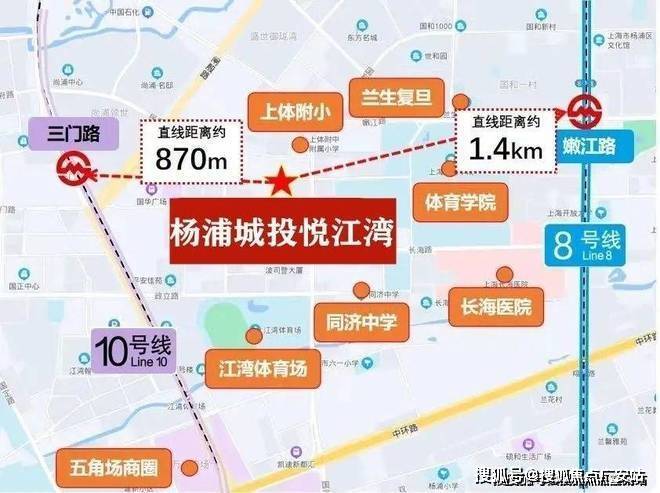 交通方面:双轨环绕,项目距离到10号线三门路站直线约870米,8号线嫩江路站直线距离约1.4公里,
