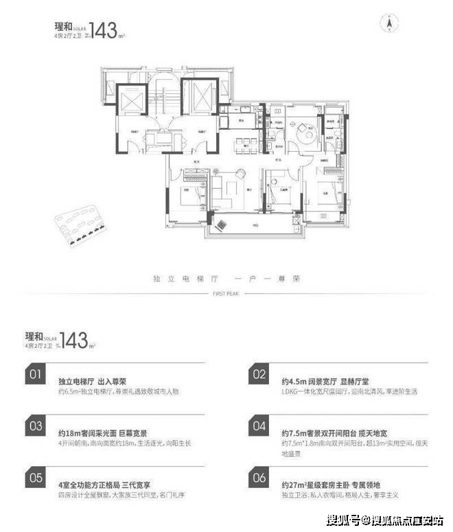 户型信息:主力户型为建面约 143-330㎡的四至五居室,包括 143㎡四室三厅两卫、193㎡四室两厅三卫、240㎡四室两厅三卫、330㎡五室三厅五卫。
