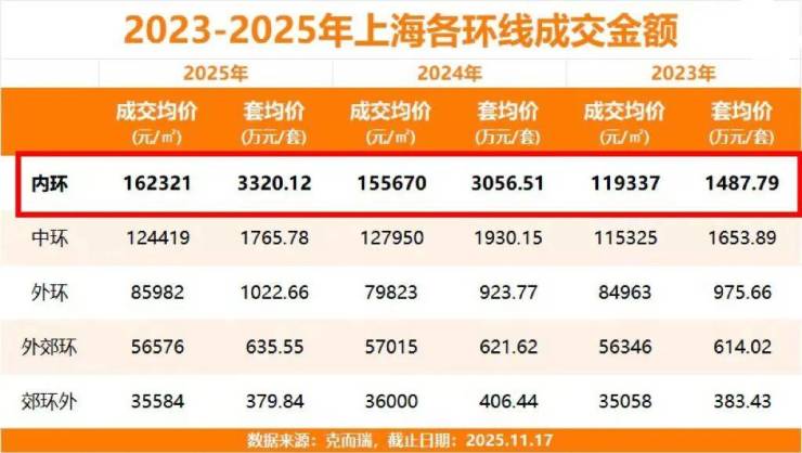 1、近三年数据,内环内呈现跳涨态势:新房成交均价从2023年约11.9万/㎡,跳涨到2025年约16.23万/㎡,涨幅达到36%。