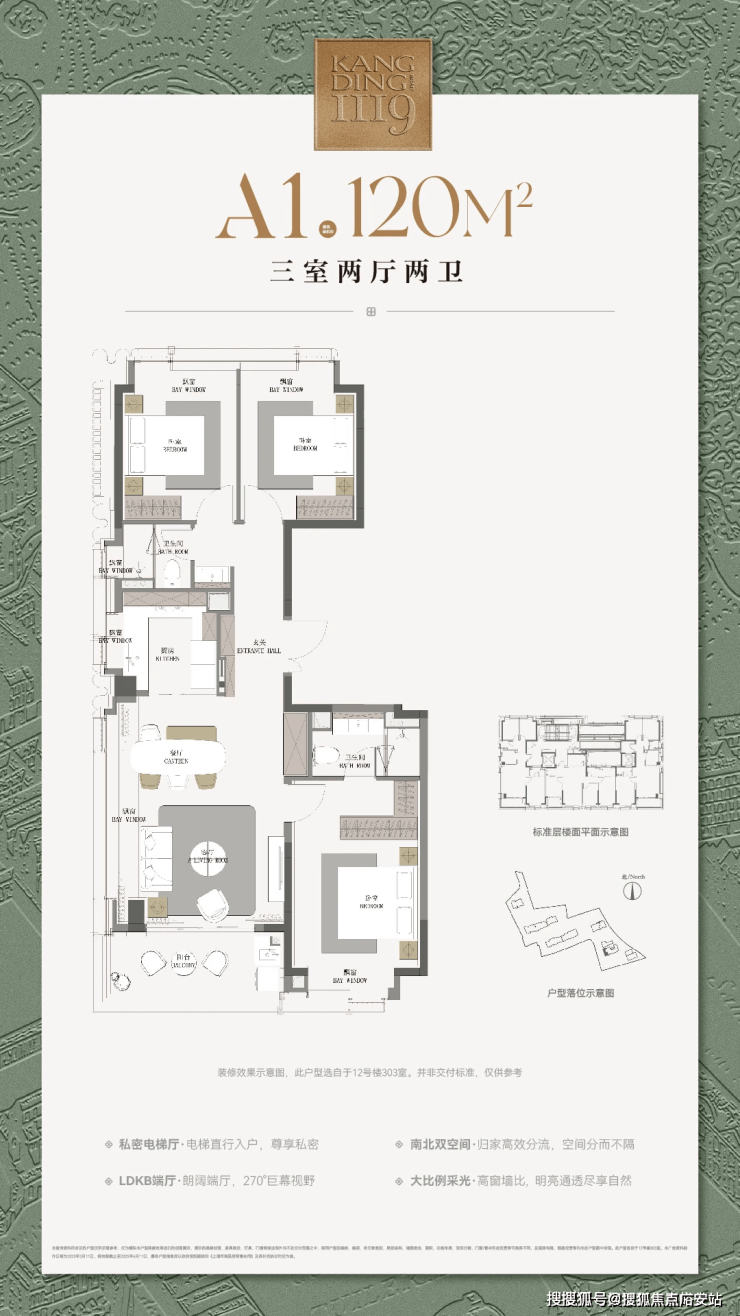 产品力才是硬通货!康定壹拾玖的户型精准拿捏改善家庭需求,120-238㎡全周期精装奢邸,装修标准高达1.8万/㎡,对标顶豪配置,厨房配备博世六件套(油烟机、燃气灶、洗碗机等)、铂浪高水槽;主卫采用进口大理石,搭配汉斯格雅恒温花洒、杜拉维特智能马桶,部分户型还带独立浴缸;全屋标配三菱重工中央空调、威能地暖、霍尼韦尔新风系统,还搭载全屋智能控制系统,细节质感拉满。重点拆解两个爆款户型,宝子们对号入座: