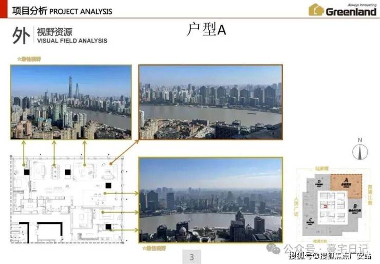本案北视角:陆家嘴、北外滩;西视角:人民广场、新天地;东视角:浦东、黄浦江;南视角:南浦大桥、世博园。
