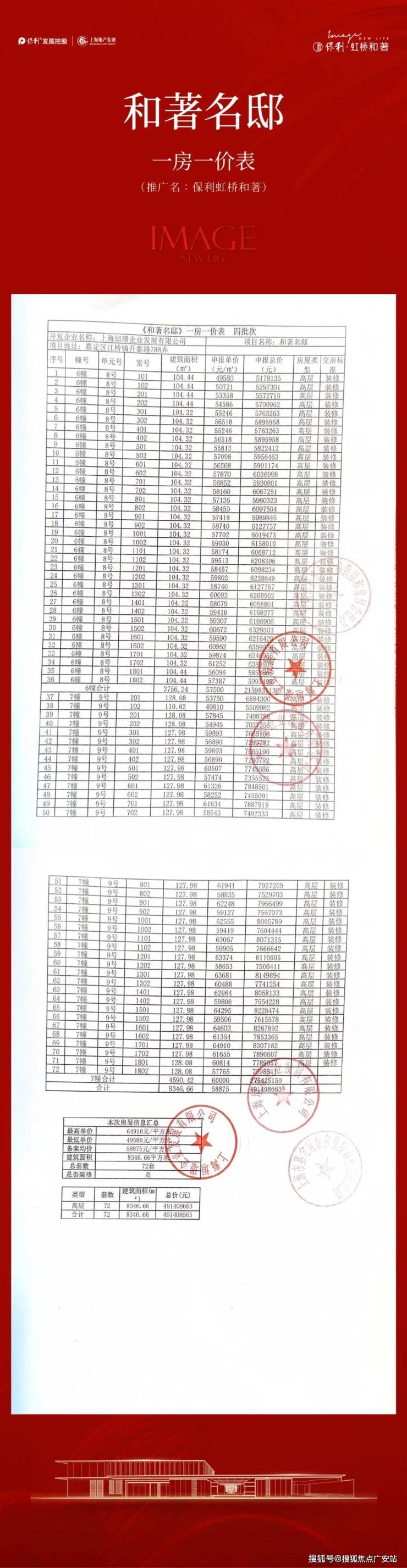上期一房一价表: