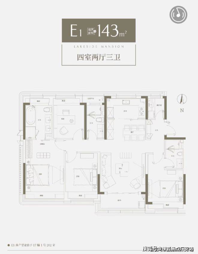 约143平户型四室两厅三卫,三代同堂的高性价比户型!