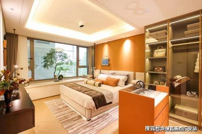 舒适主卧,主卧套房,带大衣帽区,主卫双台盆设计,满足男女主人同时使用。