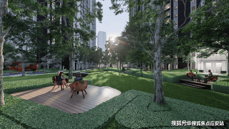 在活动大草坪上互动,其中有专属儿童乐园,景观中还保留了一些休闲平台和户外凉亭可供家长看护孩子,打造住宅花园城市中的平静绿洲,塑造与大自然的互动体验。