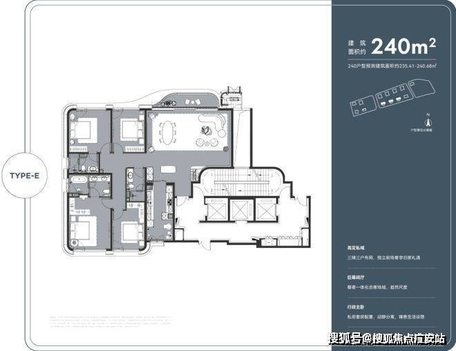 主力户型:建面约 180-380㎡大平层及复式,少量 743㎡顶豪户型。