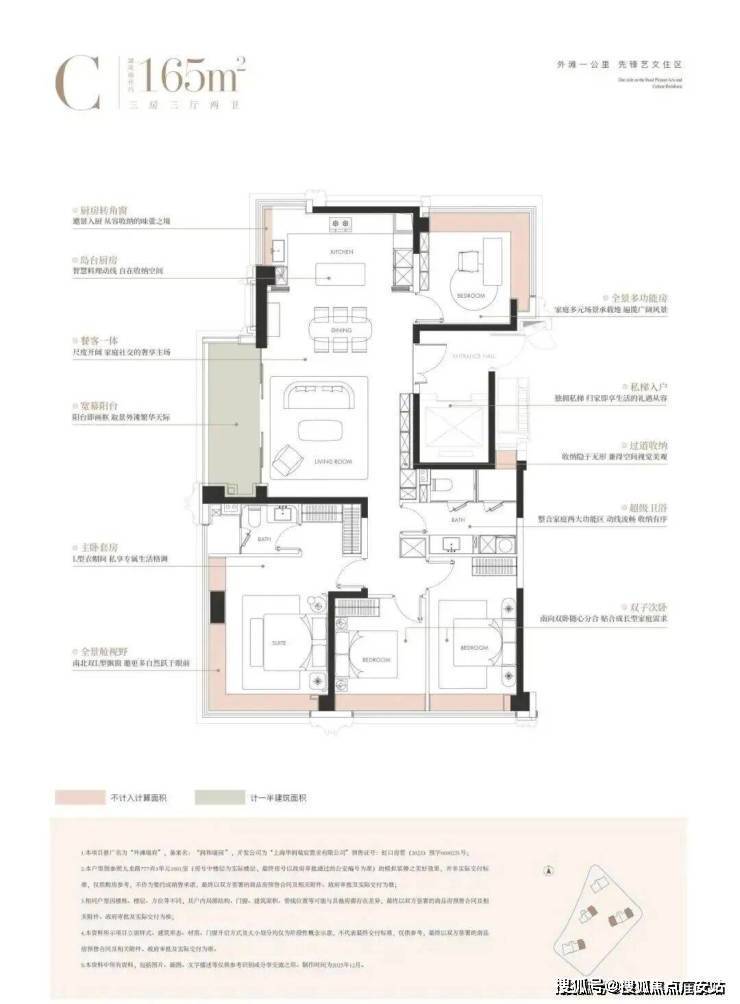 因此,外滩瑞府在建面约165㎡户型中创新推出三四房灵活定制体系。