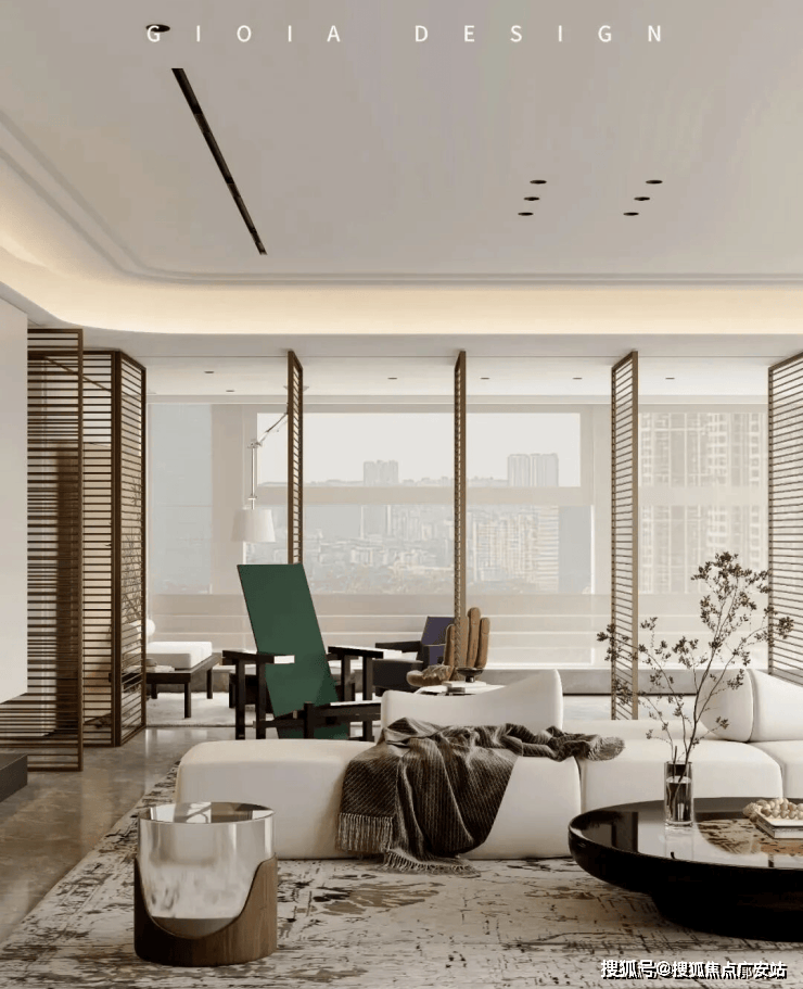 将艺术感进一步融入日常中。特别设计的专属门厅空间,是从电梯厅延伸到家,如同一处艺廊,放慢人的情绪;室内选用了浅金色奢石(外界也称其为“芬迪白大理石”)作为主要的石材,曲面的木饰面也为浅色,整体给人以明亮感。