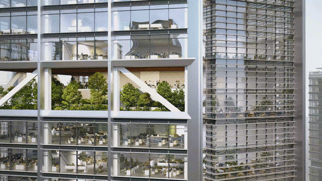 宏观来看,EIC将致力于打造LEED Community+WELL community,约14000方的绿地,设置常青绿化带,既能减少碳排放,又可以保护一座微城市的生物多样性,提高人们的生活质量,打造人与自然和谐共生的绿色社区。