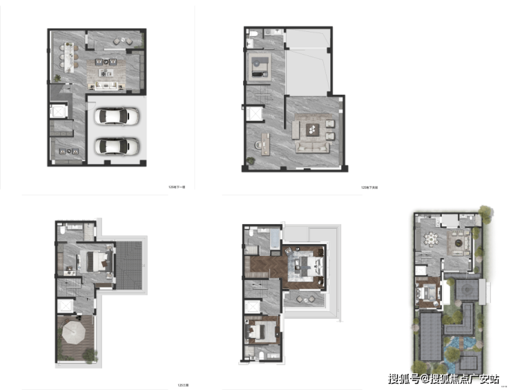 约126㎡的明星户型做到了5套房设计,地下一层、地上三层的空间形态,将空间尺度无限放大。