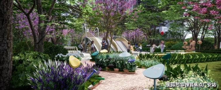 多花园:沿归家轴线设计了悠闲童梦花园·、静谧私语花园、精致乐享花园、邻里会客花园、活力健身花园等。花园种植了像金桂、红梅、晚樱、榔榆等植被,常绿与落叶植物组合搭配,三季有花,四季有景。