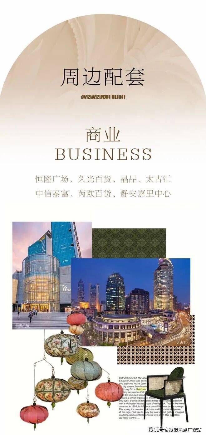 海派新中式风格:采用米白色石材、深灰色金属与大面积玻璃搭配,打造现代简约又不失传统韵味的外立面,社区入口设计融入静安文化元素。