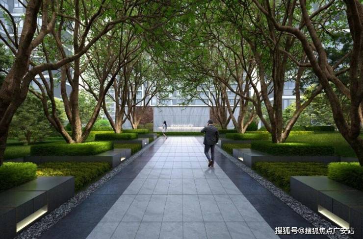 南侧地块,中庭打造了百花园,公园式的景观草坪;北侧地块,前庭设置红枫园、后庭设置百果园。