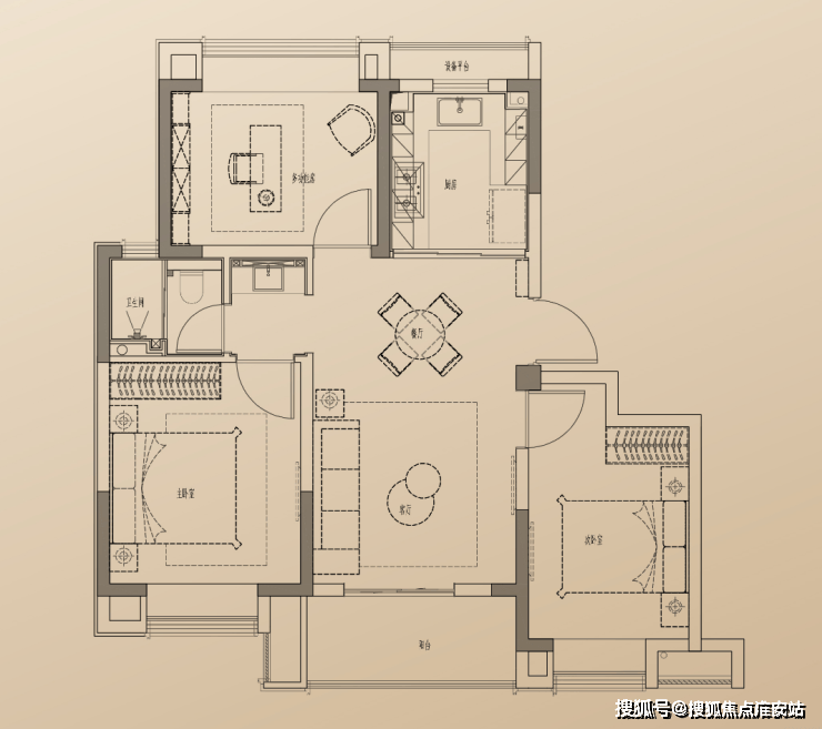 做到了同面积段中少有的横厅+大阳台设计