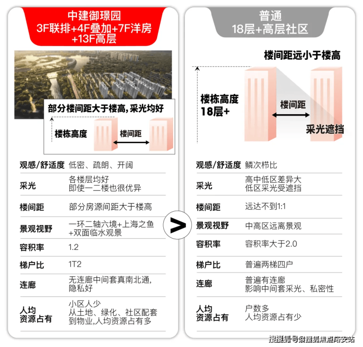 而中建御璟园不仅是这稀缺的低密住区之一,得益于其叠墅+联排+小高层+洋房的产品组成,项目的宜居性、视野、采光、人均资源占有率以及居住舒适度等全维度的表现都非常出众。