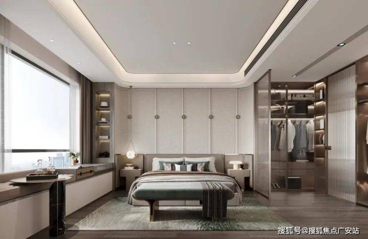 约7.1米主卧超奢开间,超越了市面上大多数客厅开间,步入式衣帽间,太太优雅换装,礼遇雍雅生活。