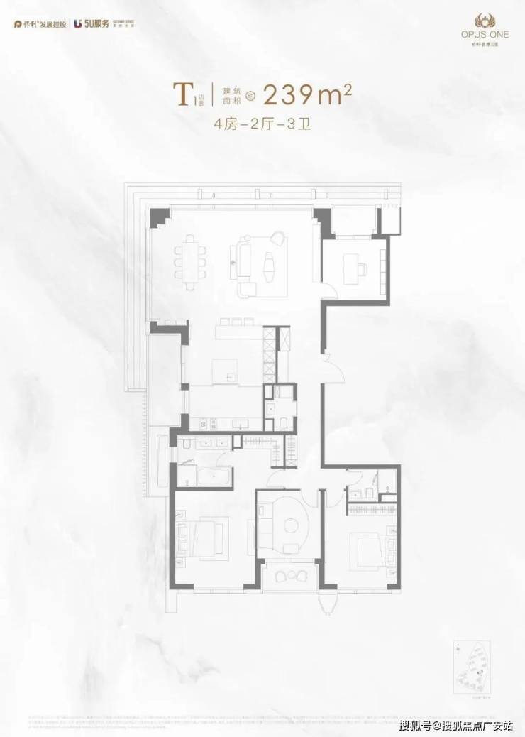 石英石台面、嘉格纳(或同档次)灶具、吸油烟机、洗碗机、冰箱、蒸汽烤箱的厨房六件套;239-251㎡户型并配有酒柜。