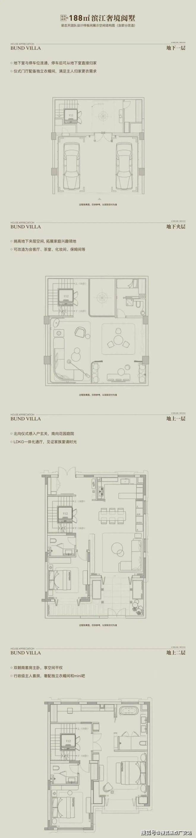 以“全两层+会所”的形态革新、花园露台地下室的全维空间、大面宽短进深的奢适格局,重构别墅生活场景。