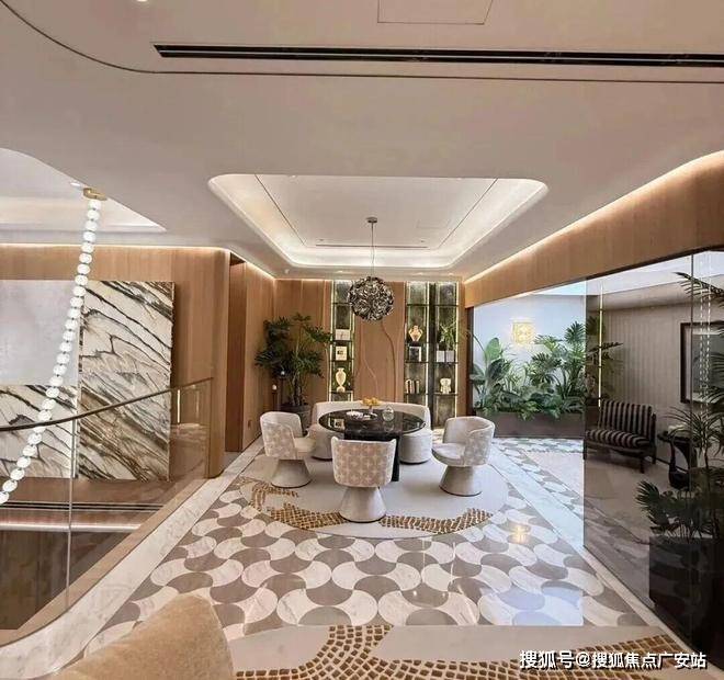 社区内设有上海风情的“三院”、海派精奢的三花园,让优雅的生活氛围随之铺展开来。下沉庭院整体长约18米,进深约9.5米,庭院的上下景观通过水帘相连通,中间结合有着层层叠水的水景,搭配水晶砖的景墙,将品质感拉满。