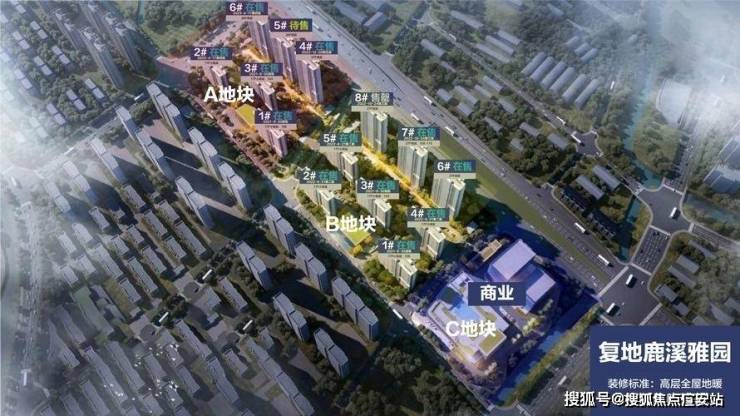 复地鹿溪雅园由上海复地集团与苏州文旅联合开发(复地持股65%),总占地面积约8.01万㎡,总建筑面积26.7万㎡,容积率2.0-2.5,绿化率37%,规划14栋17-27层高层住宅,共1163户,车位配比1:1.5(共1815个车位)。项目定位为"湿地生态住宅",紧邻虎丘湿地公园(直线距离仅430米),采用现代简约建筑风格,内部规划八大景观组团,打造"会呼吸的社区"。