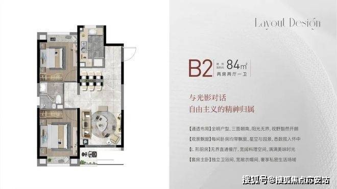 大名城·映雨江南售楼处预约电话:400-8657-114建面约99㎡3房2厅2卫,做到了三开间朝南+动静分离+南北通透+双卧室朝南+主卧套房设计+明厨明卫,室内通透明亮。