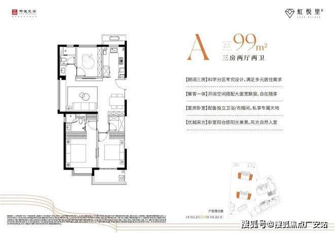 户型:建面约79-99㎡的2-3房,主打全明设计,精装交付(装标3000元/㎡)