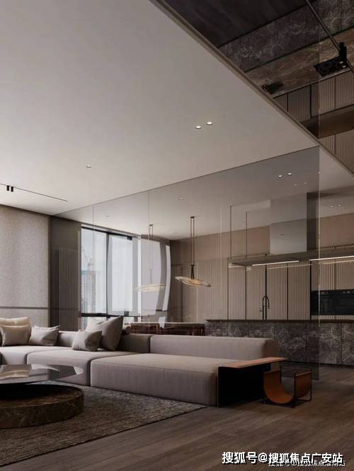 进门映入眼帘的就是衔接超大飘窗的客厅,让会客和休息区充满了开阔的尺度感。