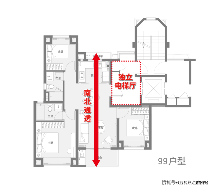 北向无连廊的前提下,中间套都能做到真正南北通透;