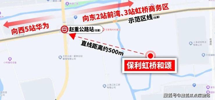 保利虹桥和颂就是当下该级别少有的真轨交房,直线距离示范区线(在建)赵重公路站仅约500米。