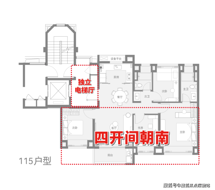 建面约115㎡4房做到同面积段罕见的四开间朝南+4房设计,同时能以更经济的总价一步到位4房。