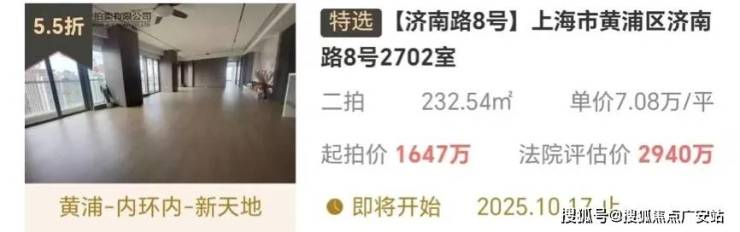 • 拍卖时间:上海金融法院将于2025年10月21日10时至2025年10月24日10时止