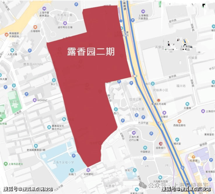 露香园二期地块,位于黄浦区老城厢核心地段,北至高墩街-福佑路,南至方浜中路-昼锦路,东至河南南路-狮子街,西至露香园路,与露香园一期紧密接壤。东临豫园和外滩,地理位置优越,临近10号线豫园站。