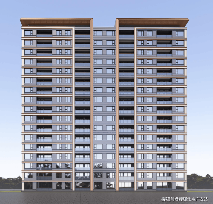 ◆现代立面:以大面积玻璃、香槟色装饰线条打造深灰色质感外立面,构建匠心美学范本。