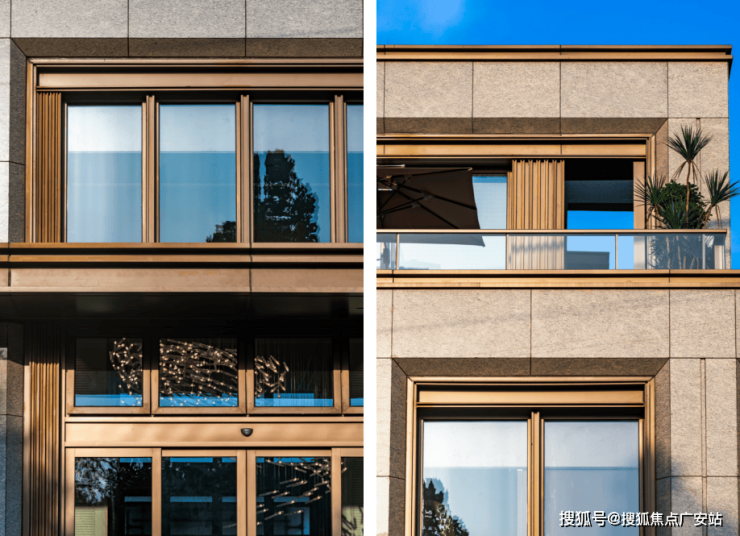 立面采用现代都会风格,用进口花岗岩石材、香槟金铝板配上深色门窗,使建筑整体更加现代、高档和耐用。