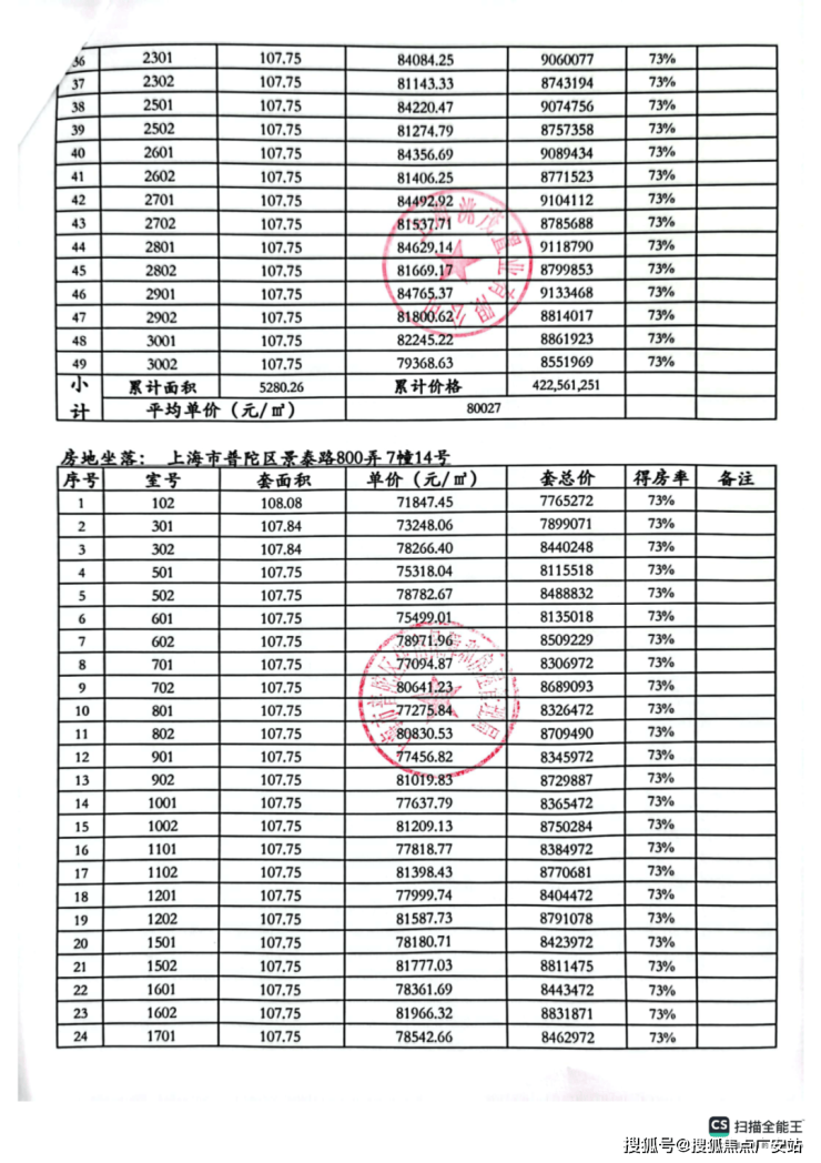 一房一价表: