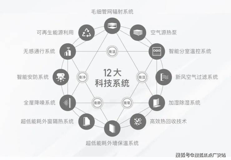 首先是户式科技系统。该系统以“衡温、衡湿、衡氧、衡净、衡静”系统为理念。由空气源热泵、高效热回收调湿新风机组、毛细管网、自控系统等组成。