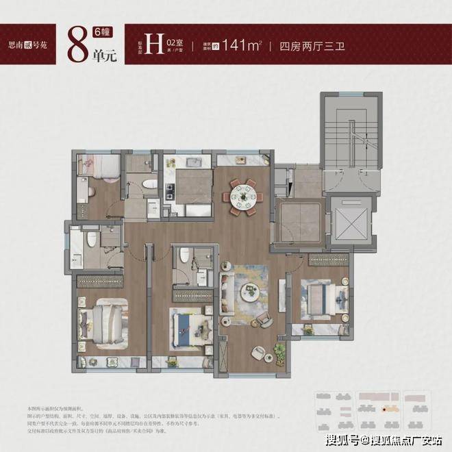 四房:141-188㎡(188㎡四房配6米宽景阳台)