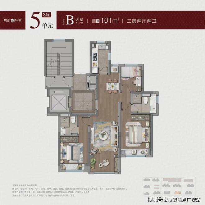 三房:建面约98-122㎡(如101㎡三房两厅两卫)