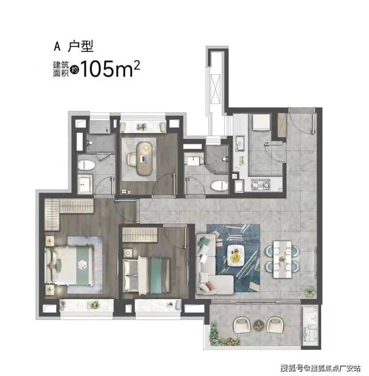 105 квадратных три комнаты, две комнаты, две комнаты, две комнаты, две комнаты, две комнаты, которые в дизайне преуменьшают границы пространства, позволяя гостевому ресторану и балкону соединиться друг с другом, и чувство жилого пространства расширяется еще больше, чтобы обеспечить максимальное солнечное освещение и свежий воздух.