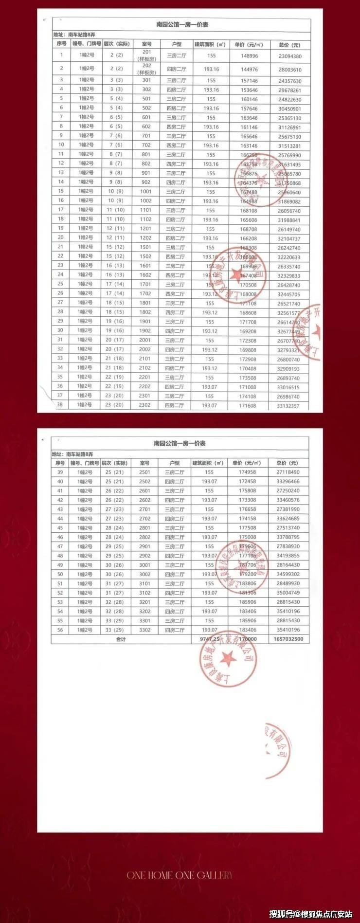 一批次一房一价表