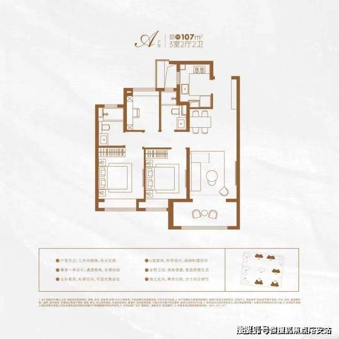 建面约107㎡三房的户型,三开间朝南,大面宽阳台,餐客厅一体,普陀金茂府售楼处电话:400-887-8824(一对一热情服务)还有精细化收纳体系,人性化细节设计,极具功能性与舒适性,满足高阶精致生活。